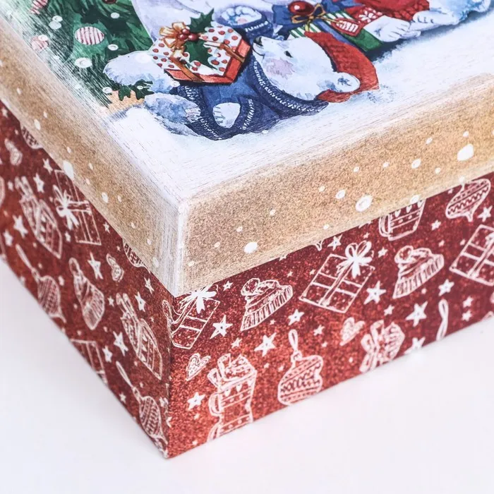 С этой новогодней квадратной коробкой ваши подарки станут еще более особенными, принося радость и удовлетворение волшебных моментов обмена подарками.