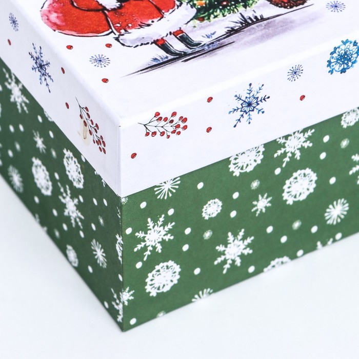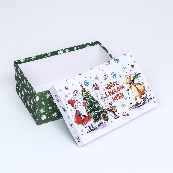 Эта прекрасная новогодняя коробка является идеальным выбором для упаковки ваших праздничных подарков. Она обладает не только великолепным внешним видом, но и практичностью, предоставляя удобное пространство для разнообразных сюрпризов.