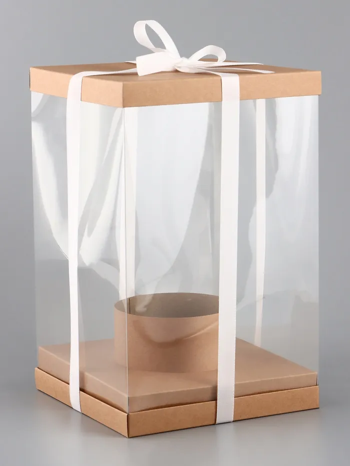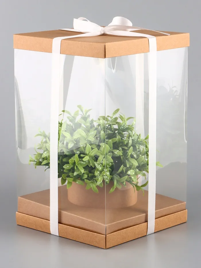 Коробка PVC, для цветов с лентой, 28×18×18 см, крафт — Характеристики
