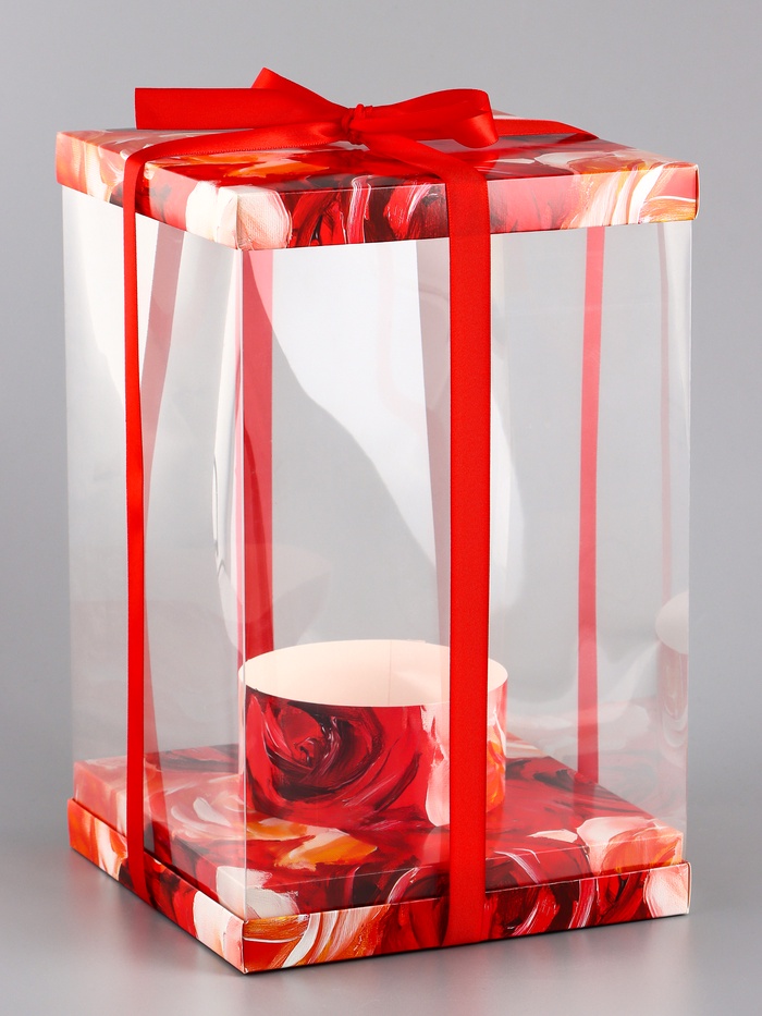 Коробка PVC, для цветов с лентой, 28×18×18 см, красный — Характеристики
