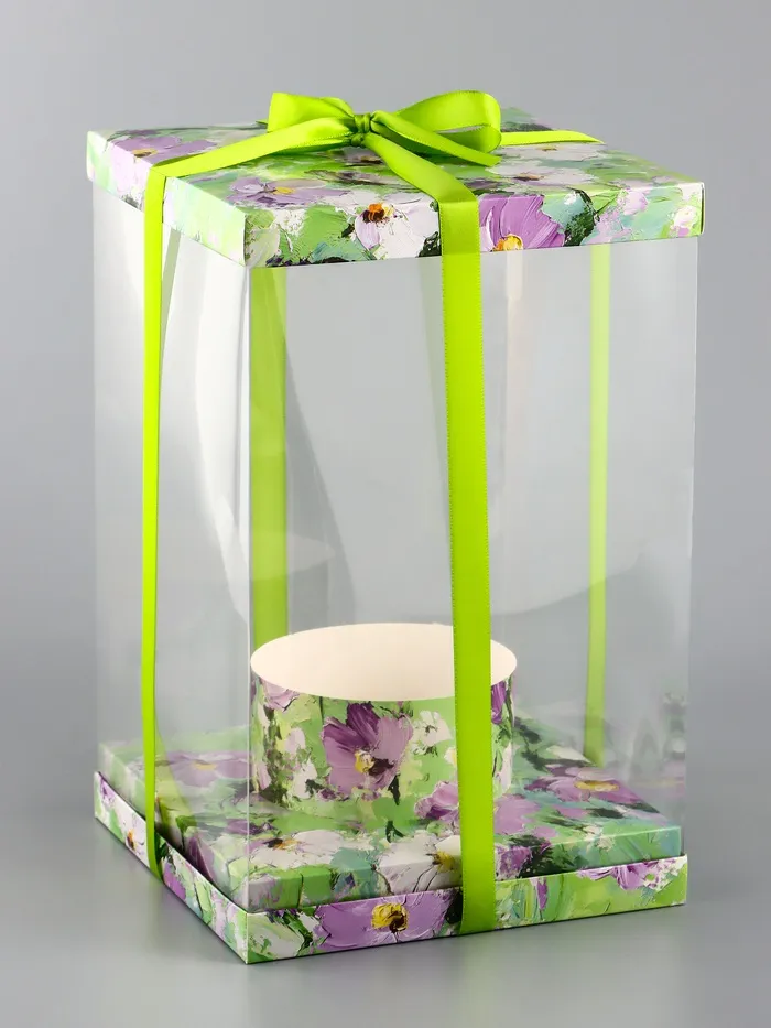 Коробка PVC, для цветов с лентой, 28×18×18 см, зеленый — Характеристики