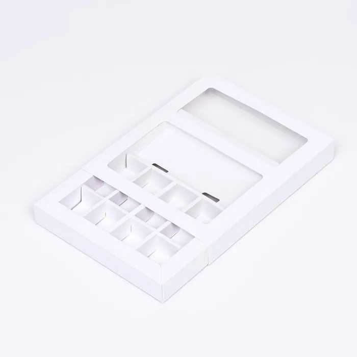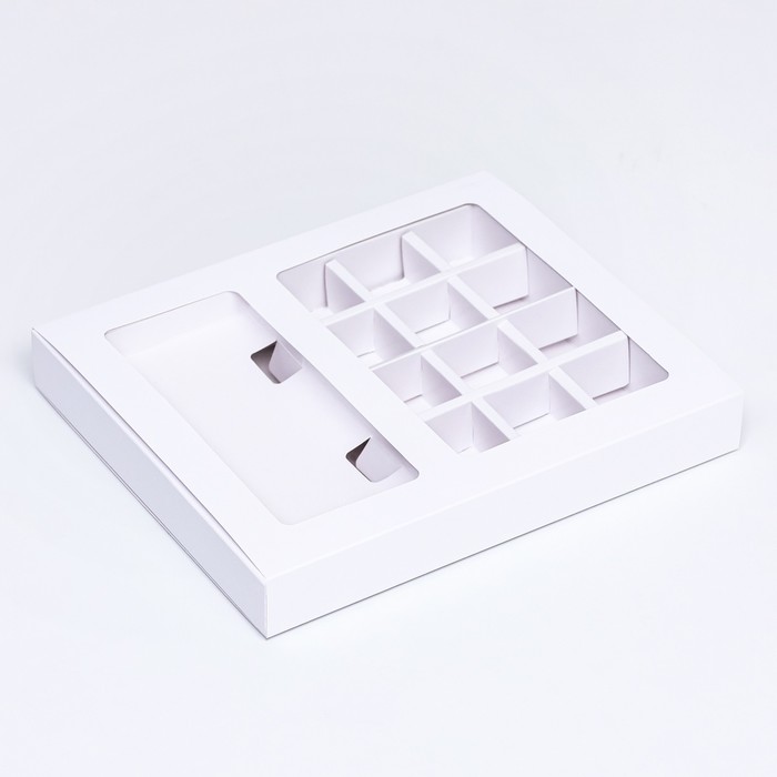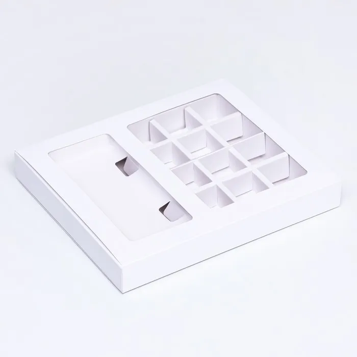 Коробка с обечайкой с окном под 12 конфет и плитку шоколада 23.7×19.9×3.1 см — Характеристики