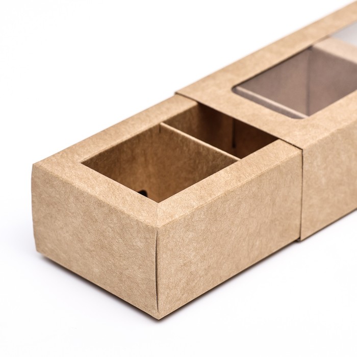 Коробка с обечайкой с окном «под 3 конфеты» 13×5×3.3 см, крафт — Характеристики