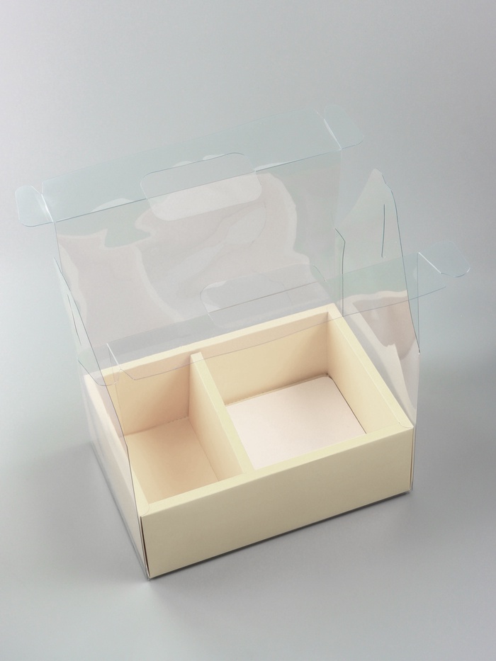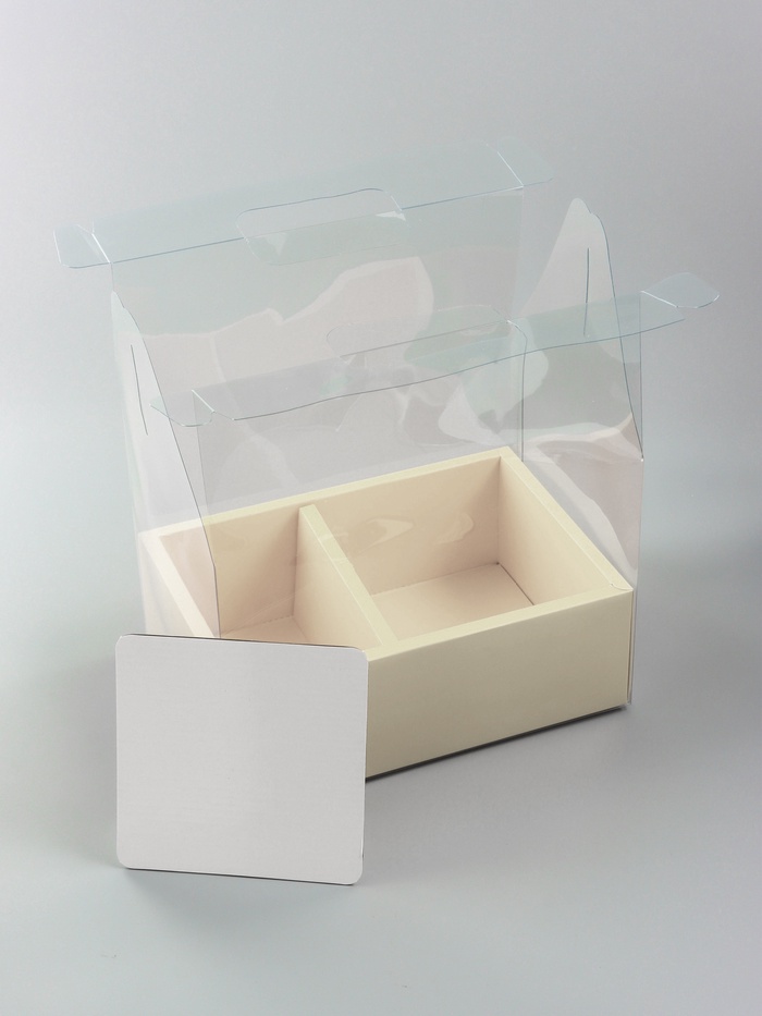 Элегантная и многофункциональная коробка с окном из PVC размером 26 x 18 x 30 см предназначена для одновременного размещения цветов и десертов. Два отделения различного размера обеспечивают оптимальное пространство для каждого элемента композиции.