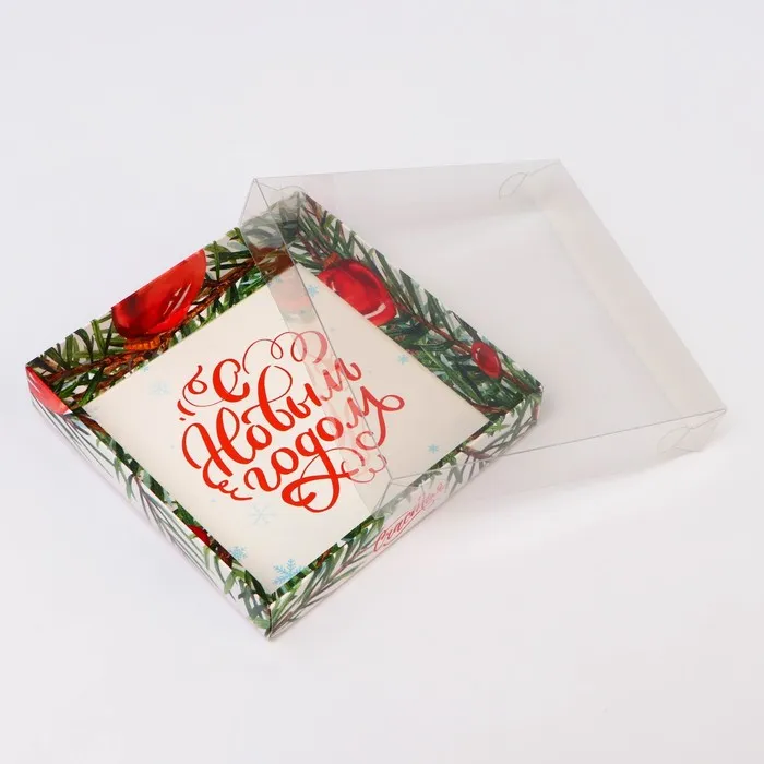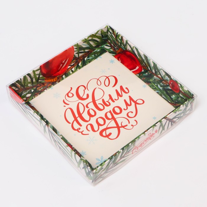 Коробка с PVC крышкой, «С Новым годом», 16×16×3 см