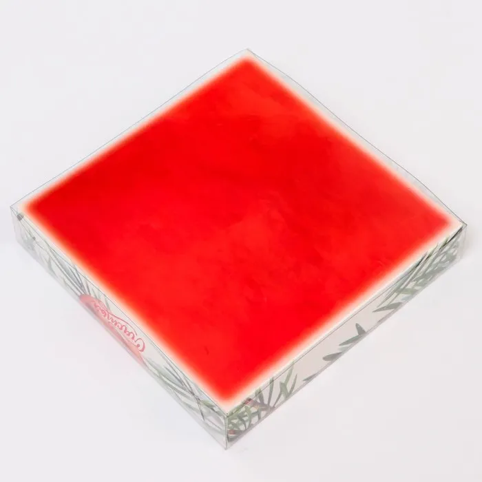 Крышка из прозрачного PVC материала надежно защищает содержимое, позволяя легко демонстрировать вкусные десерты, такие как пирожные, печенье или конфеты, не открывая коробку.