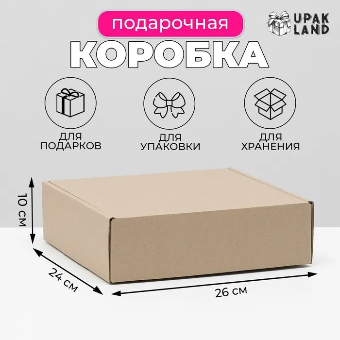 Коробка самосборная, бурая, 26×24×10 см — Характеристики