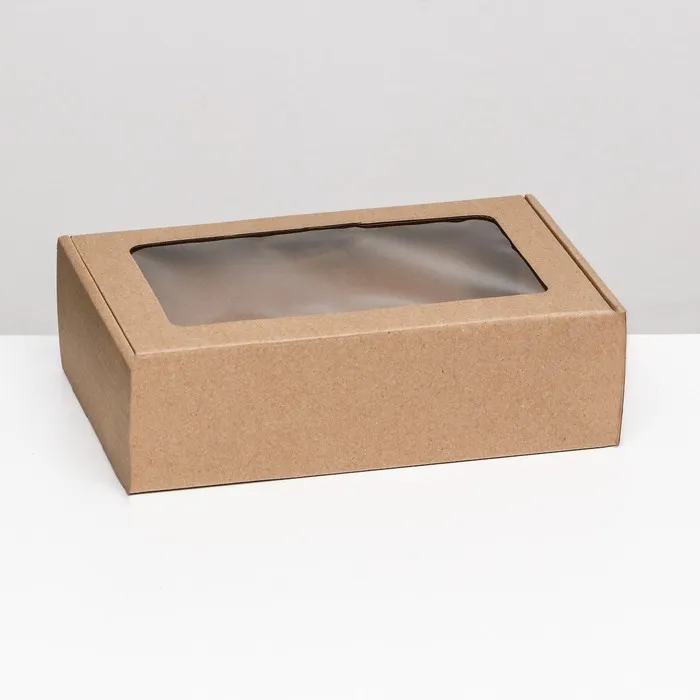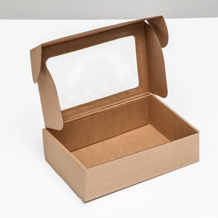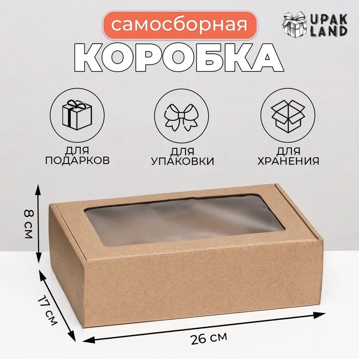 Коробка самосборная, бурая с окном, 26×17×8 см — Характеристики
