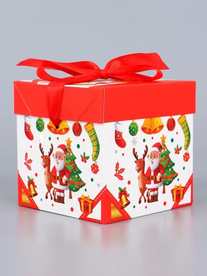 Коробка Самосборная "Дед мороз и Елка" 15х15х15 см 10724301