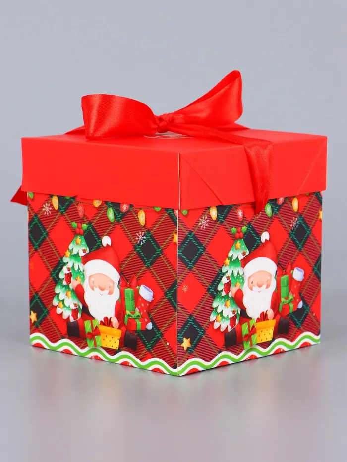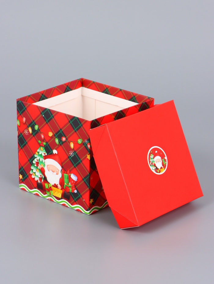 Коробка Самосборная "Дедушка мороз" 10х10х10 см