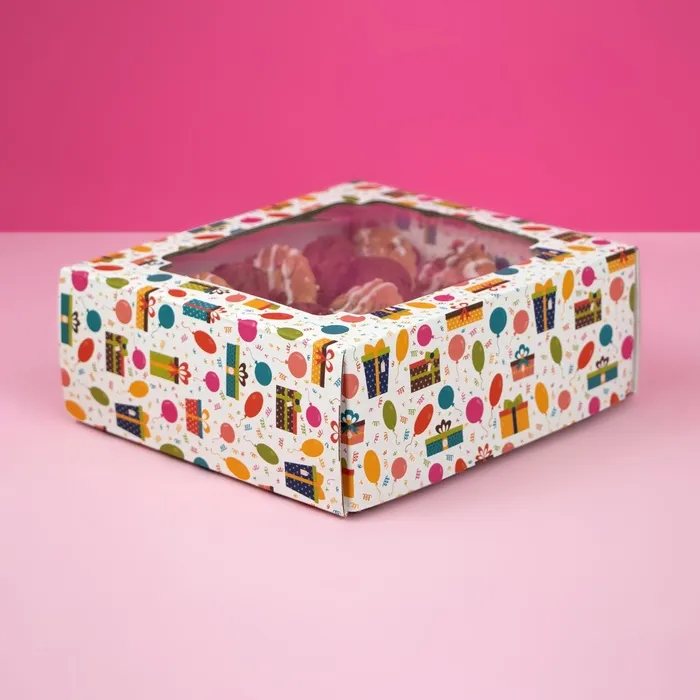 Коробка самосборная, крышка-дно, с окном,«Яркий подарок» 14.5×14.5×6 см — Характеристики