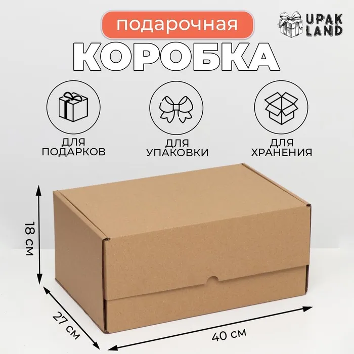 Коробка самосборная «Почтовая», бурая, 40×27×18 см — Характеристики