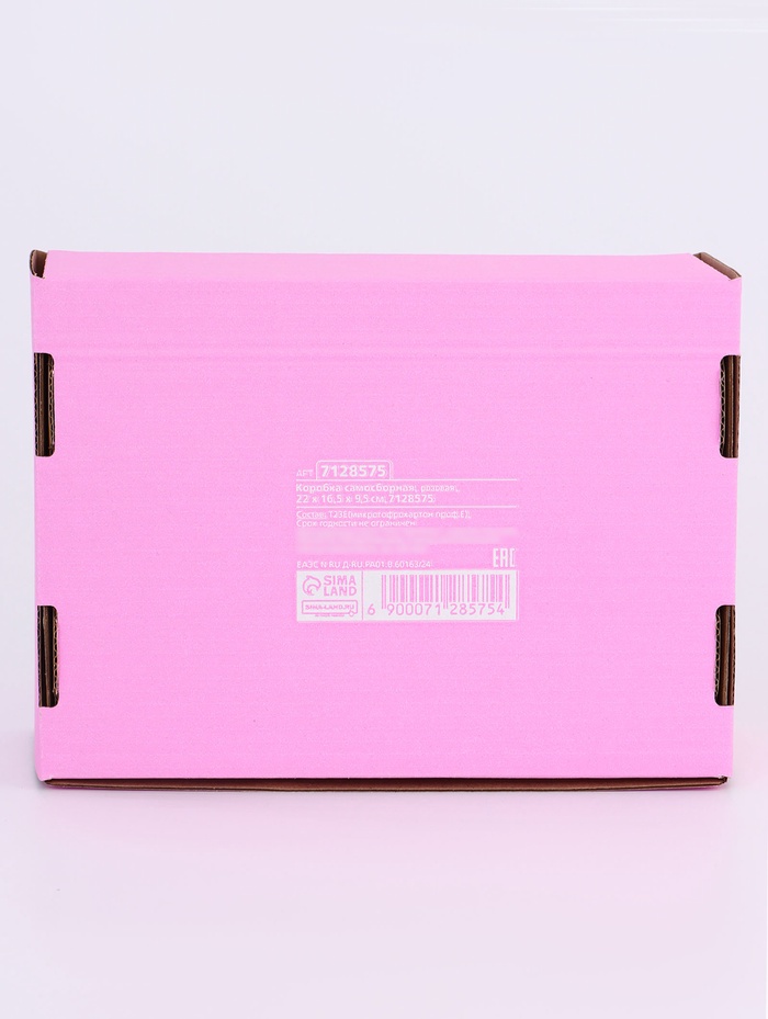 Коробка самосборная, розовая, 22×16.5×9.5 см — Характеристики