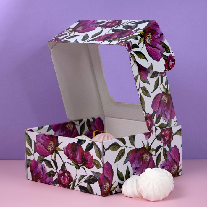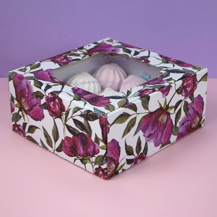 Коробка самосборная, с окном, "Акварельные цветы", 19 х 19 х 9 см — Характеристики