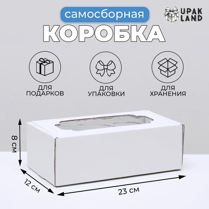 Коробка подарочная с окном - универсальное и стильное решение для упаковки и представления разнообразных товаров или подарков. Прозрачное окно позволяет визуально оценить содержимое коробки, придавая ему дополнительную привлекательность. Эта коробка сочетает в себе функциональность и визуальное привлечение, делая товары или подарки более привлекательными для покупателей или получателей.