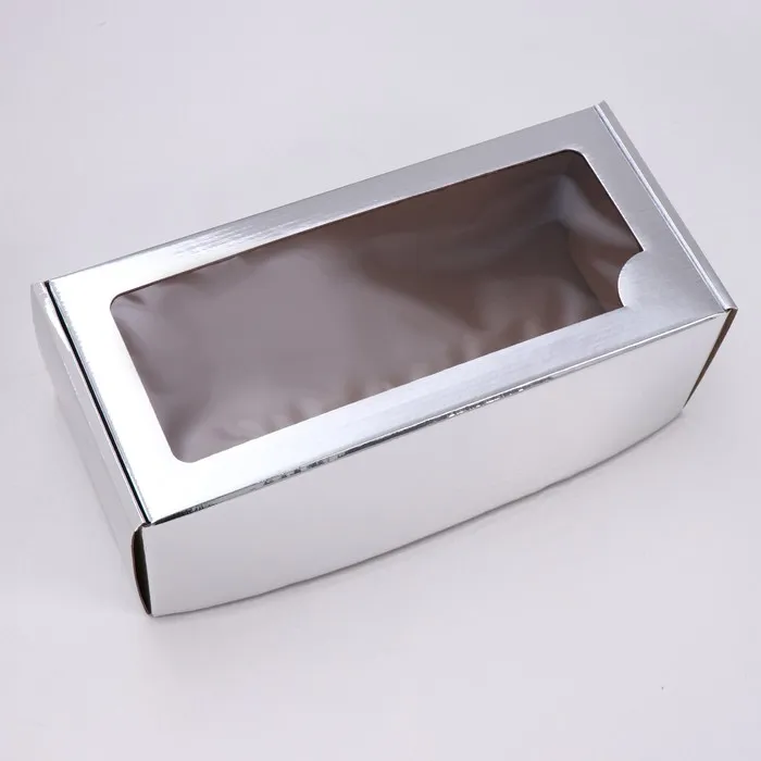 Коробка самосборная, с окном, серебряная, 16×35×12 см