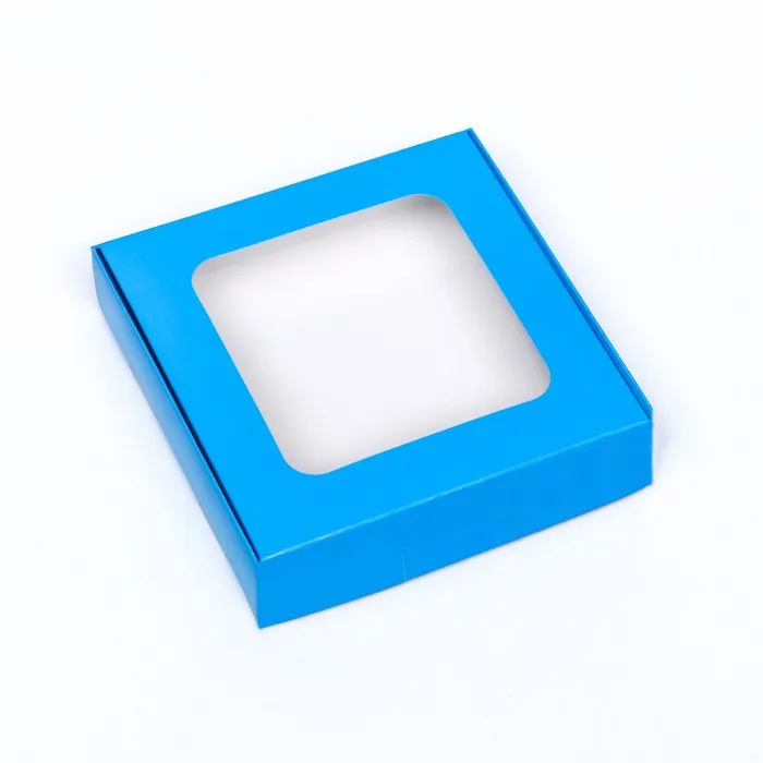 Коробка самосборная с окном синяя, 13×13×3 см — Характеристики