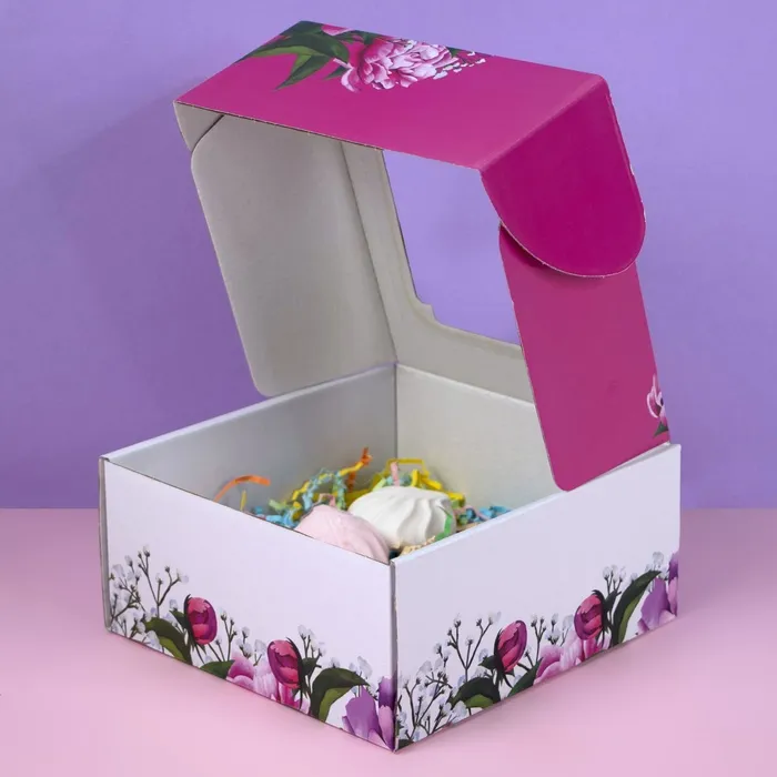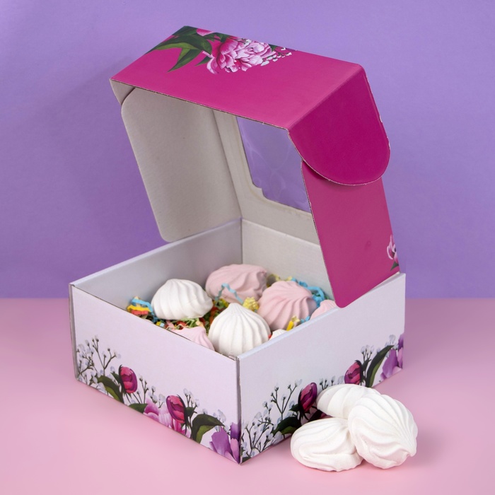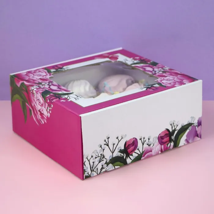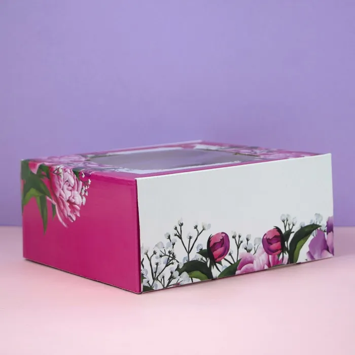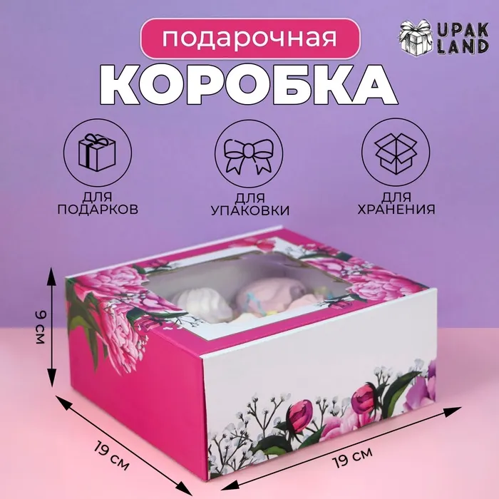 Коробка самосборная, с окном, «Весенние пионы», 19×19×9 см — Характеристики