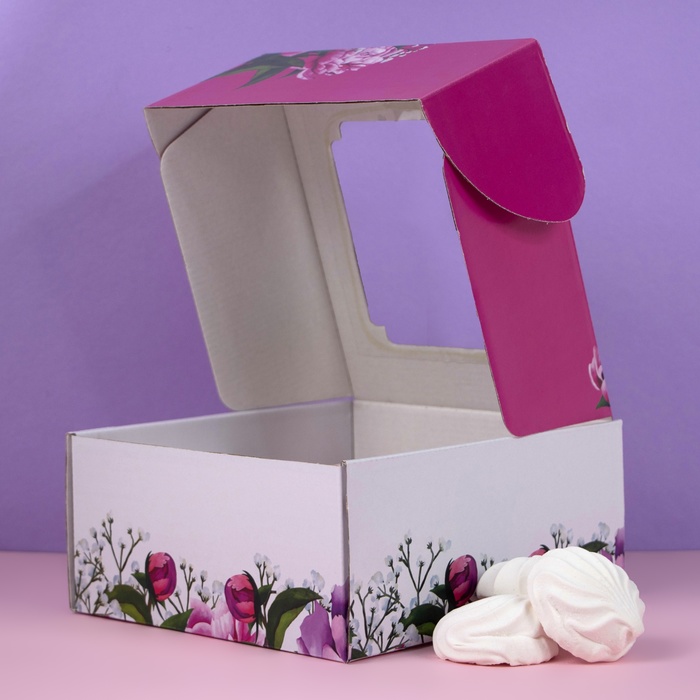 Коробка самосборная, с окном, «Весенние пионы», 19×19×9 см