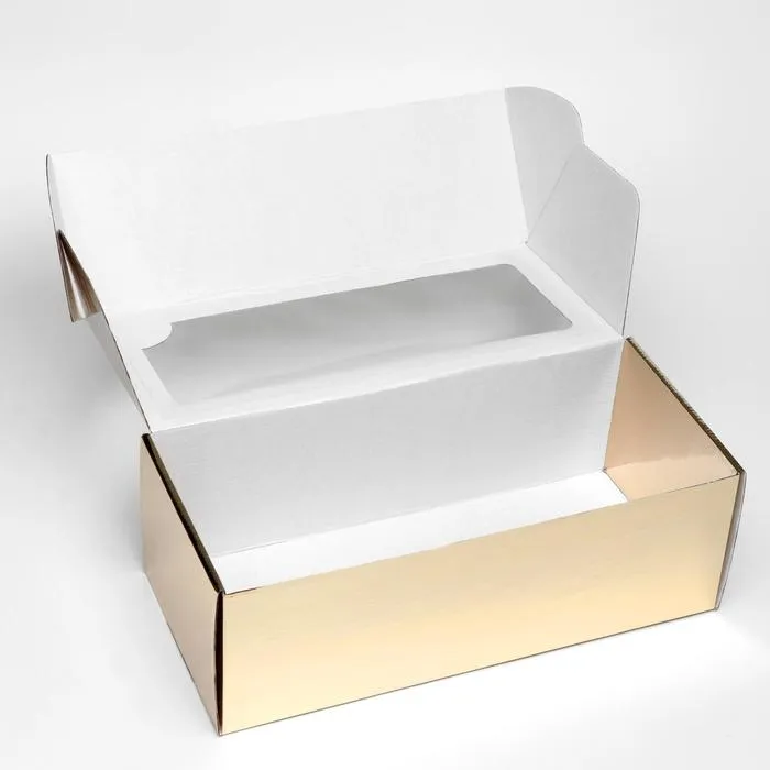 Подарите вашим изделиям элегантность и сияние! Складная коробка с окном, золотистая – идеальное решение для упаковки подарков или кондитерских изделий. Эта стильная коробка привлекает внимание своим блеском и добавляет нотку роскоши всем вашим презентациям.