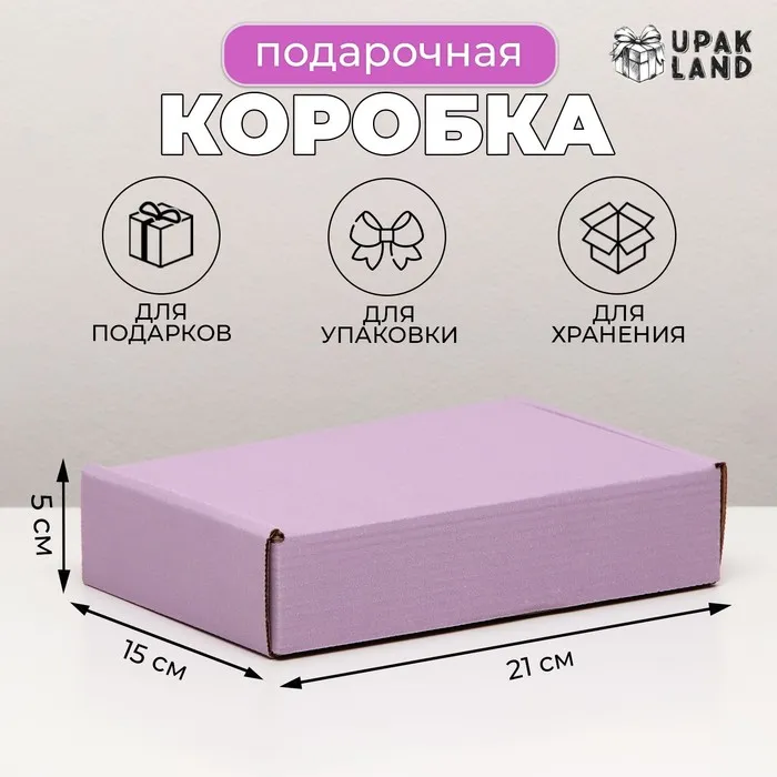 Коробка самосборная, сиреневая 21×15×5 см — Характеристики