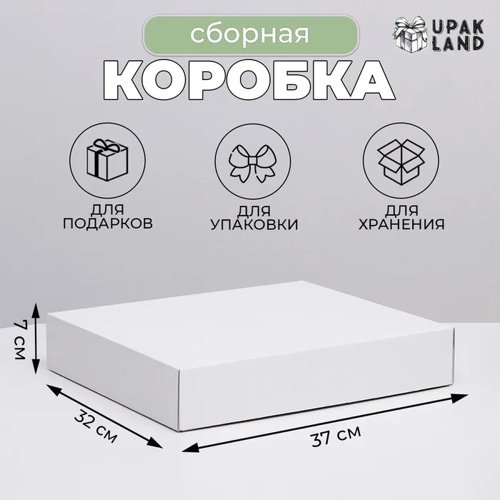 Коробка сборная без печати крышка-дно белая без окна 37×32×7 см — Характеристики