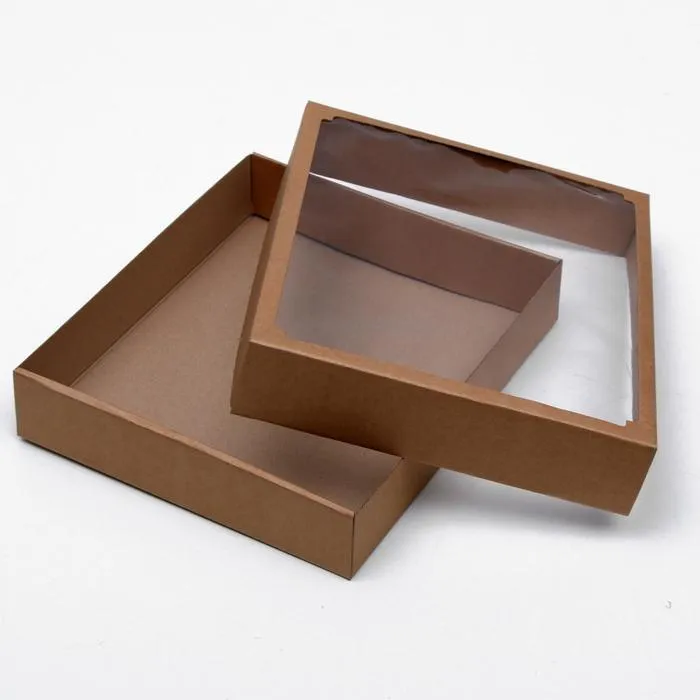 Коробка сборная без печати крышка-дно бурая с окном 37×32×7 см — Характеристики