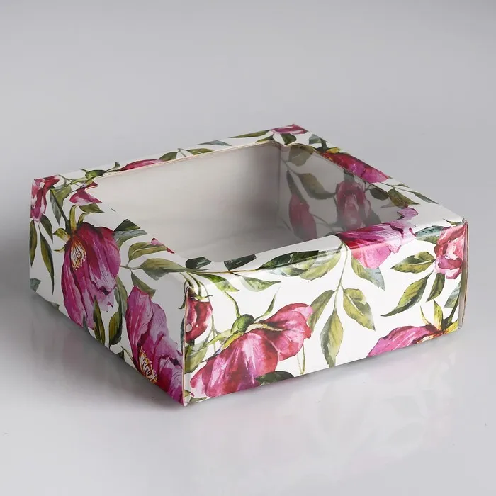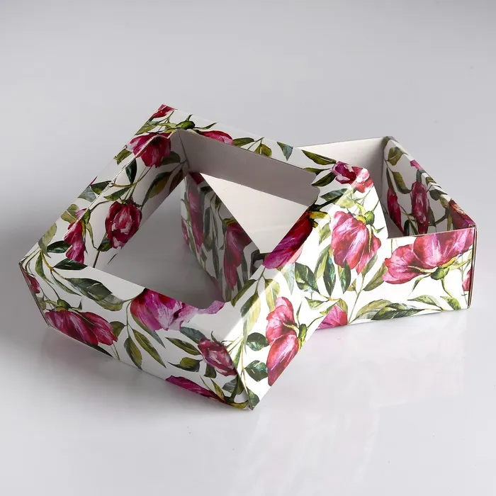 Коробка сборная крышка-дно с окном, «Акварельные цветы», 14.5×14.5×6 см — Характеристики