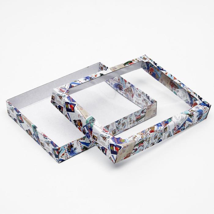 Коробка сборная крышка - дно с окном, «Новогодняя почта», 26×21×4 см Новый год — Характеристики