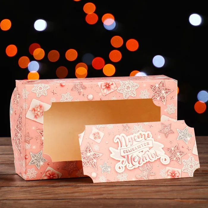 Коробка сборная крышка - дно с окном, «Розовые мечты», 25×15×7 см набор 5 шт. — Характеристики
