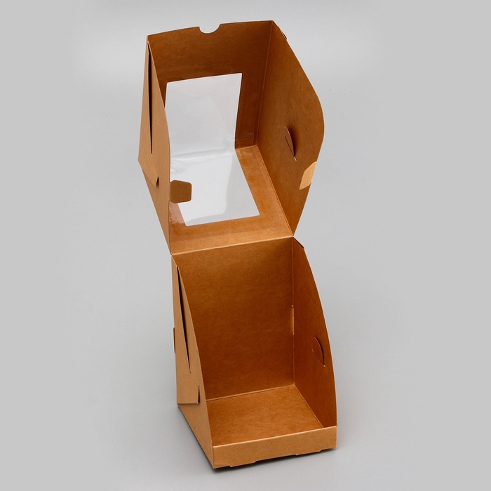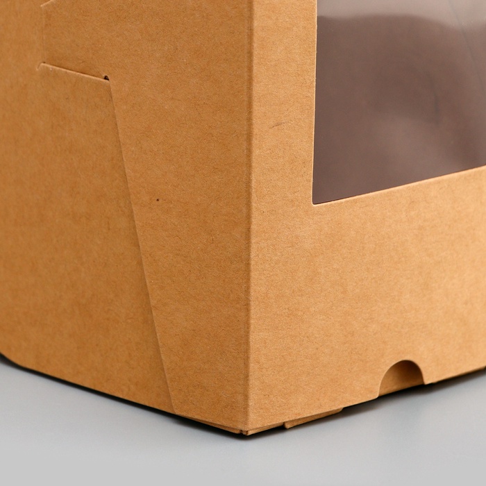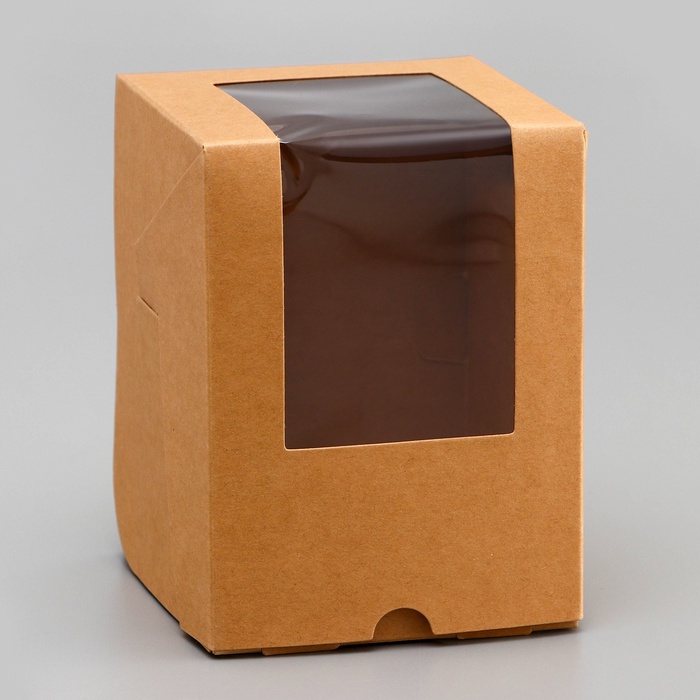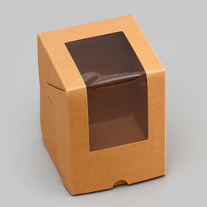 Коробка сборная с окном, крафт, 12.5×9.5×9.5 см