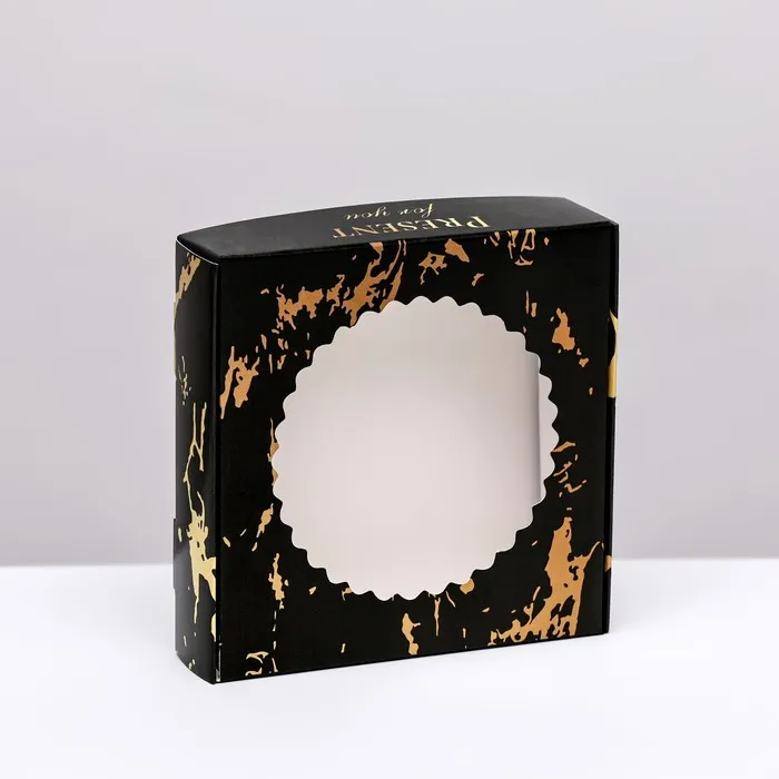 Коробка сборная с окном, «Презент», 11.5×11.5×3 см — Характеристики
