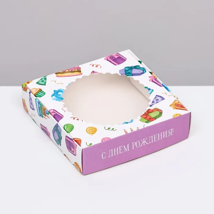 Коробка сборная с окном, «С Днем Рождения», 11.5×11.5×3 см — Характеристики