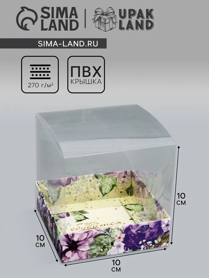 Коробка сборная с PVC крышкой, «Комплимент», 10×10×10 см — Характеристики