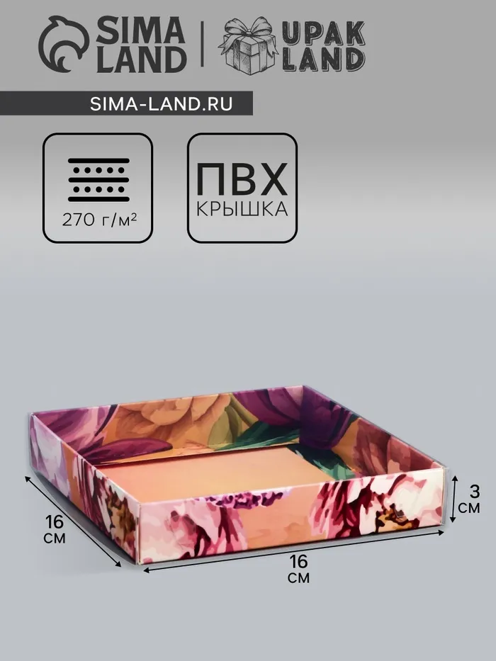 Коробка сборная с PVC крышкой, «Подарок для тебя», 16×16×3 см — Характеристики