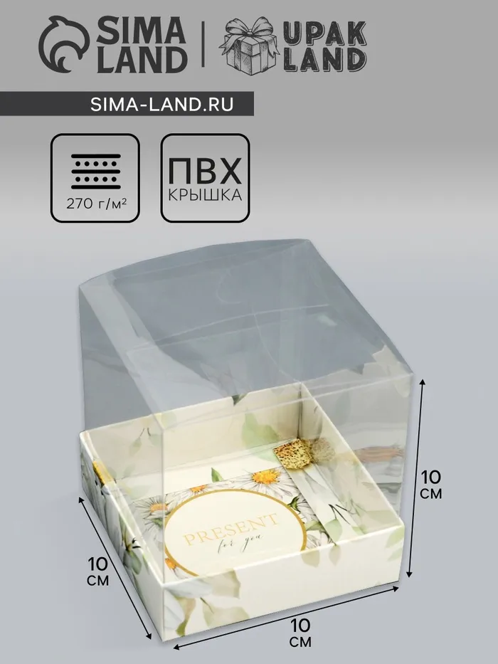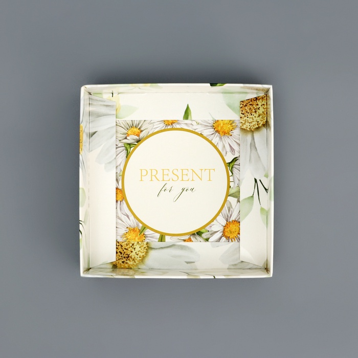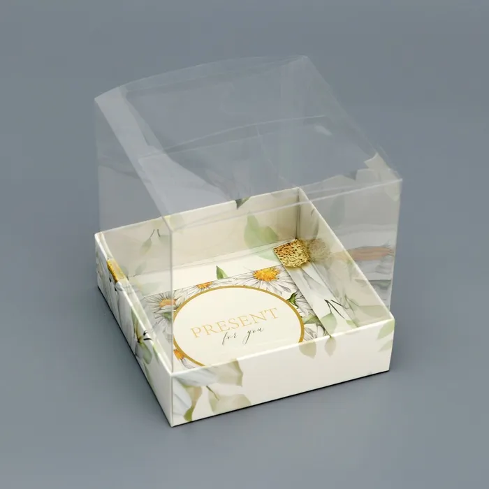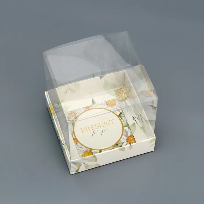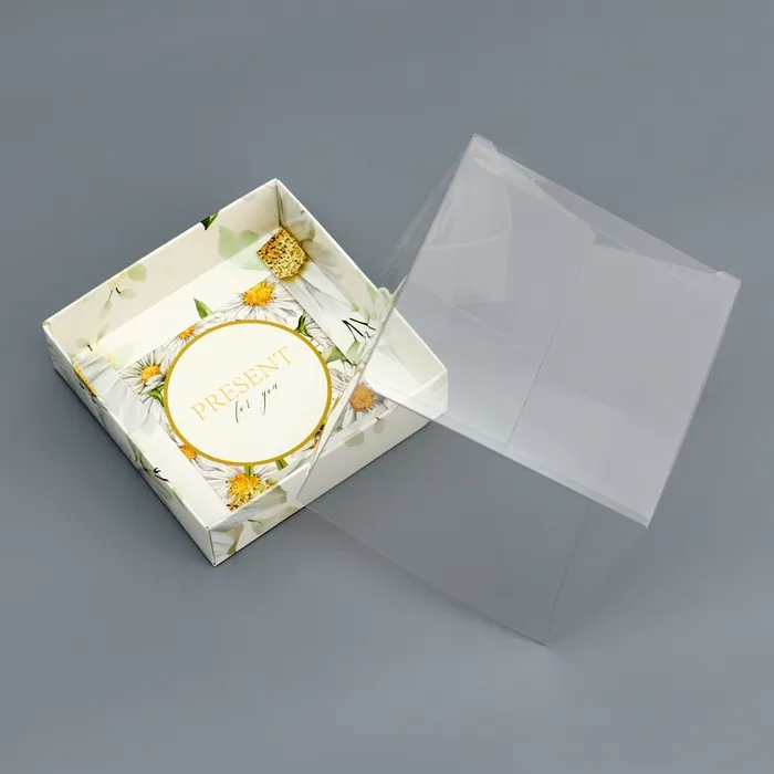 Коробка сборная с PVC крышкой, «Ромашки», 10×10×10 см — Характеристики