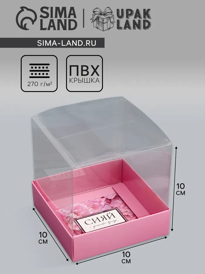 Коробка сборная с PVC крышкой, «Сияй от счастья», 10×10×10 см — Характеристики