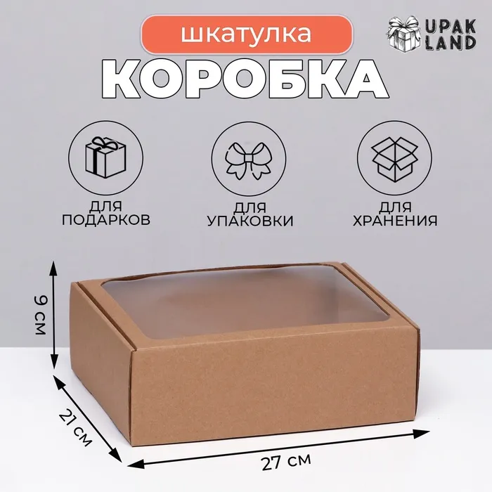 Коробка подарочная с окном - универсальное и стильное решение для упаковки и представления разнообразных товаров или подарков. Прозрачное окно позволяет визуально оценить содержимое коробки, придавая ему дополнительную привлекательность. Эта коробка сочетает в себе функциональность и визуальное привлечение, делая товары или подарки более привлекательными для покупателей или получателей.