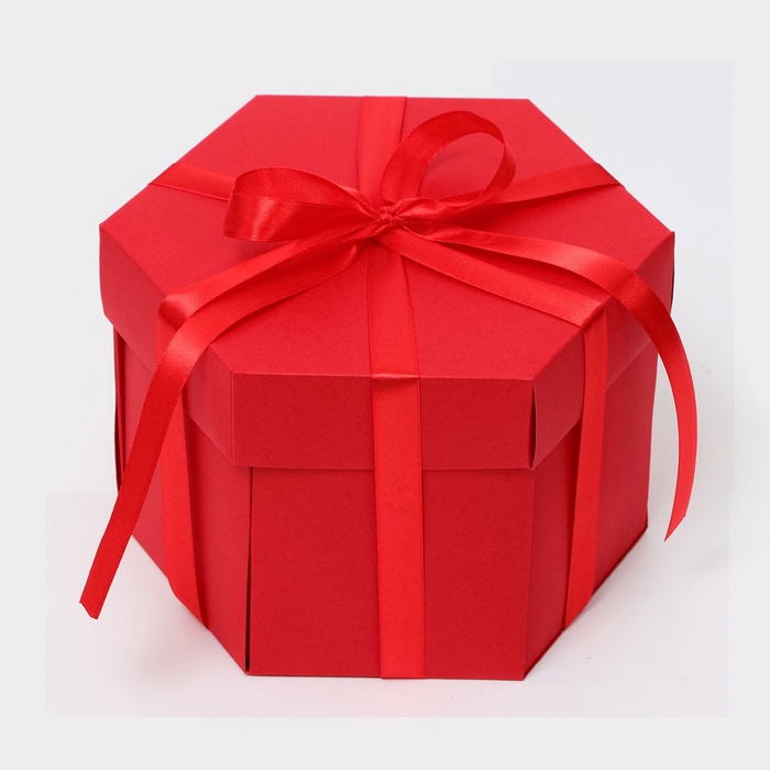 Коробка - сюрприз раскладушка, красная, с лентой и двойным скотчем для сборки, 19×13 см — Характеристики