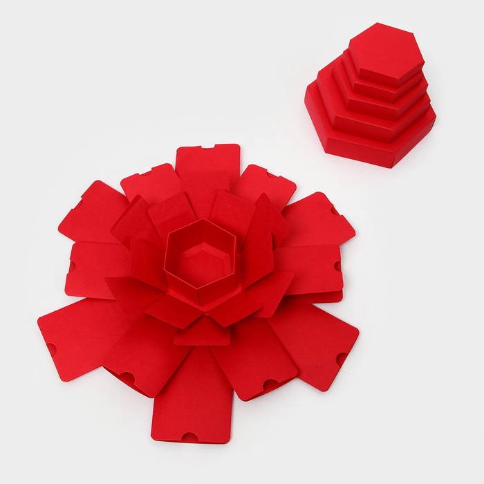 Театральное раскрытие для особенного момента! Красная коробка-раскладушка с декоративной лентой — это интерактивная упаковка, которая превращает вручение подарка в небольшое представление. Эффектная конструкция раскрывается как цветок, демонстрируя содержимое.