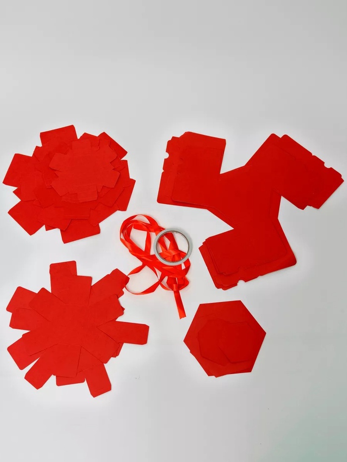 - Мгновенная сборка без дополнительных инструментов: В комплекте идет двусторонний скотч для быстрой фиксации элементов. Вы собираете коробку за 2-3 минуты, создавая готовую упаковку для сюрприза.