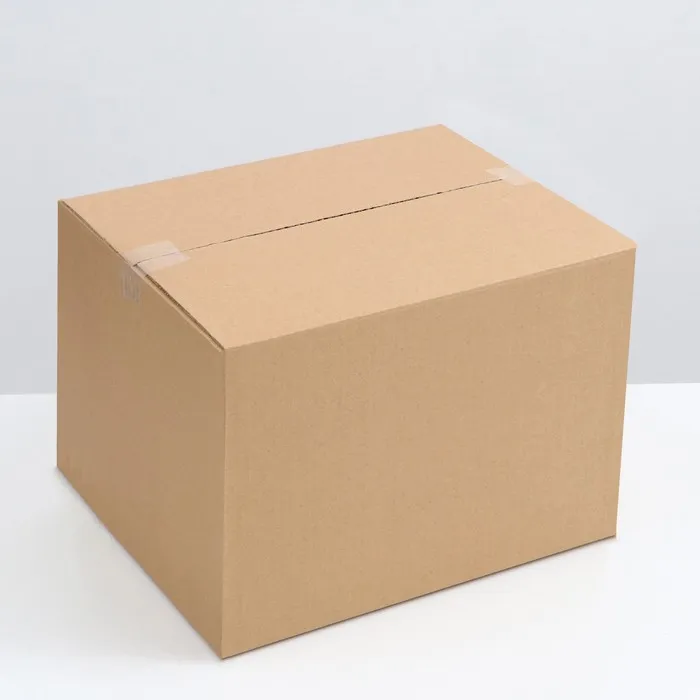 Коробка складная изготовлена из плотного трехслойного гофрокартона.