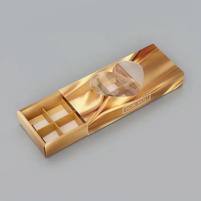 Складная конструкция делает упаковку очень удобной. Вы можете легко сложить коробку, когда она не используется, что экономит пространство. А при необходимости — просто разложить и подготовить к упаковке конфет или других сладких угощений.