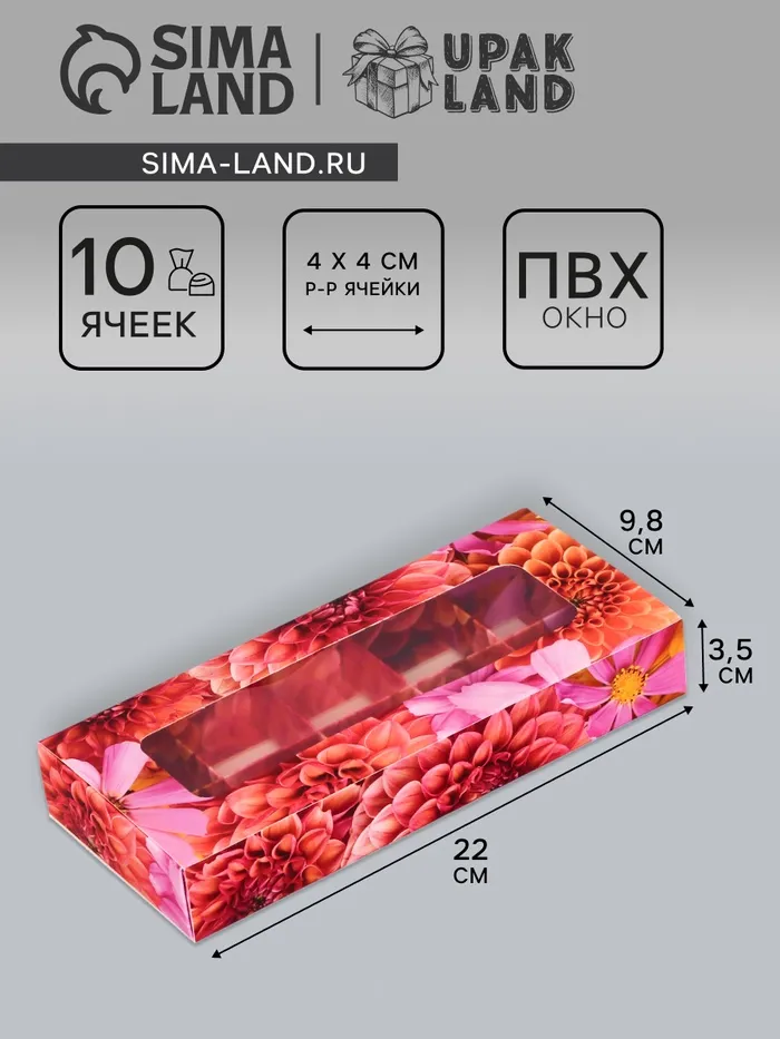Коробка складная для конфет (9,8 х 22 х 3,5 см) — это идеальный аксессуар для сладостей, который не только сохраняет их свежесть, но и придает оригинальный и стильный вид. Эта коробка отлично подойдет для упаковки 10 конфет, делая каждый момент подарка особенным и незабываемым.