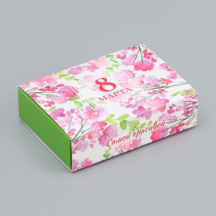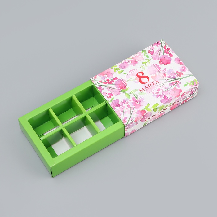 Коробка складная для 6 конфет без окна «С 8 марта», 13.7×9.8×3.8 см