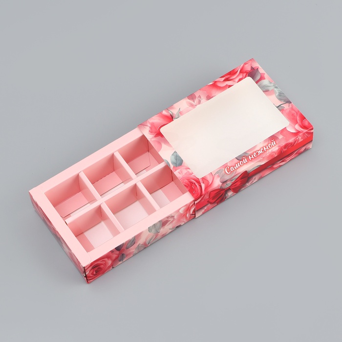 Коробка складная для 6 конфет «Самой нежной», 13.7×9.8×3.8 см