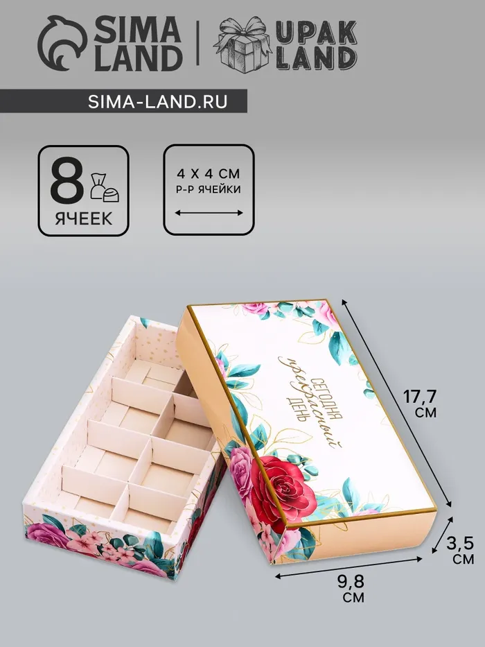 Коробка складная для 8 конфет без окна «Прекрасного настроения», 9.8×17.7×3.5 см — Характеристики