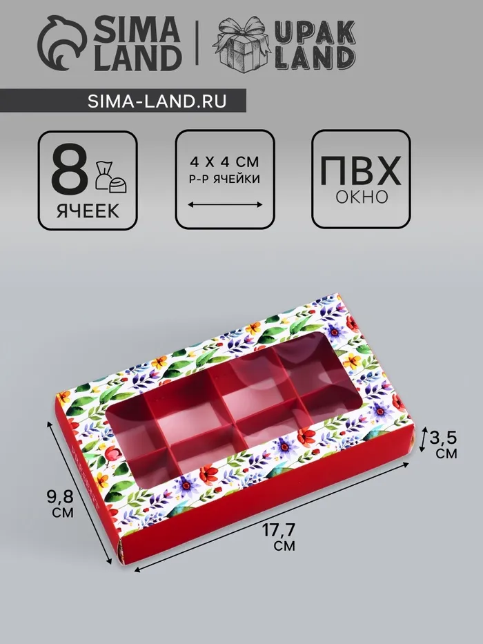 Размеры 9,8 х 17,7 х 3,5 см позволяют аккуратно разместить восемь конфет, превращая их в восхитительный и романтичный подарок.