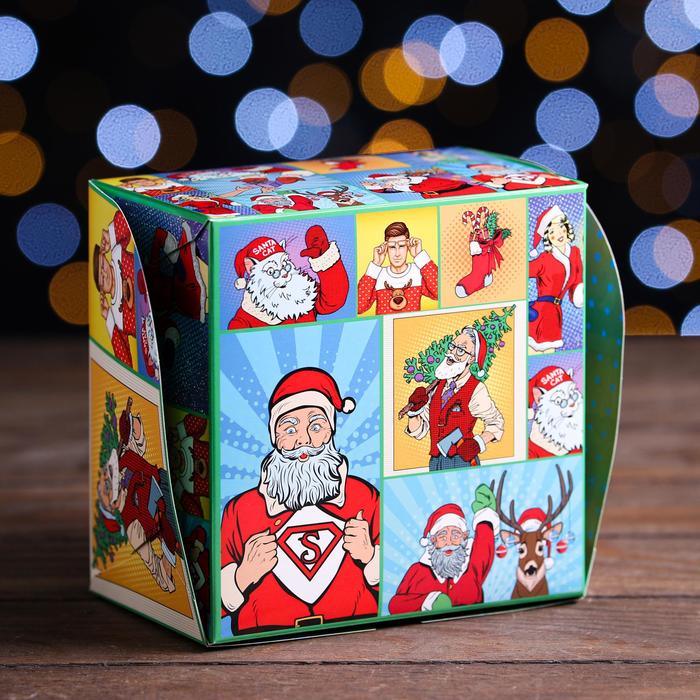 Коробка складная, двухсторонняя, «Новогодние супергерои», 16×16×10 см — Характеристики