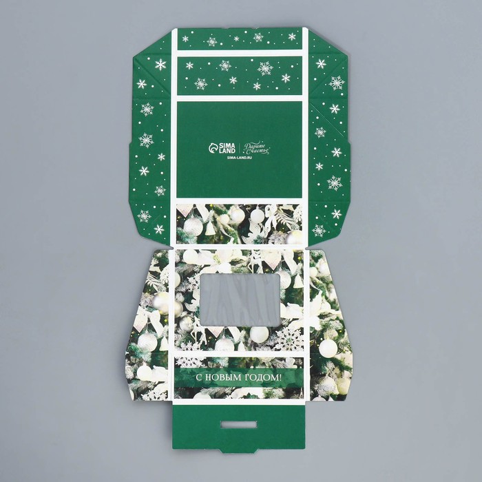 Коробка сборная без печати крышка-дно белая с окном 14.5×14.5×6 см